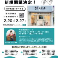 新たに「LELE music studio」さんで金曜日にギターのレッスンを始める事になりました。 無料体験会は、2/20と2/27に行います。ギターを楽しみたいという方やこれから始めようと思っている方等々、ぜひお申込み
