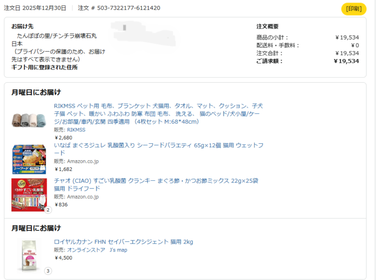 合計 19,534円 (欲しいものリストから選び、送る手配をしました)