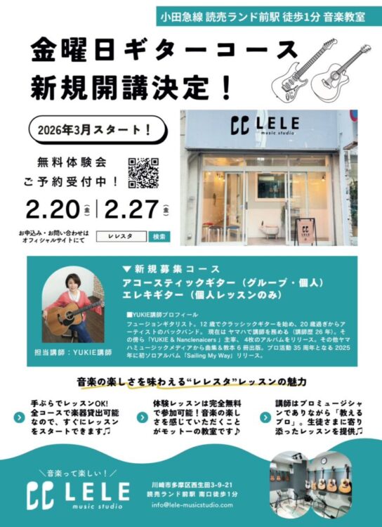 #Guitar #ギター #レッスン #ギターレッスン #レレスタ #LELEMUSICSTUDIO #レレミュージックスタジオ #小田急線 #読売ランド #YUKIE #無料体験会