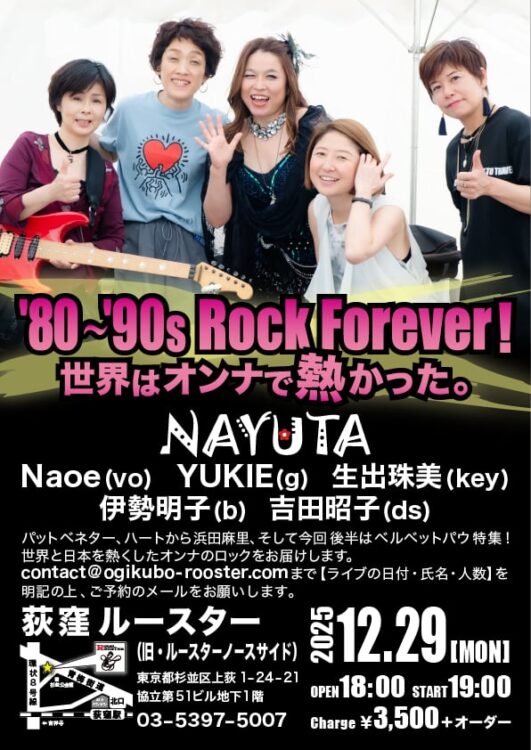 ★12/29(月)【80’~90’s Rock Forever!】世界はオンナで熱かった! NAYUTA(ナユタ)