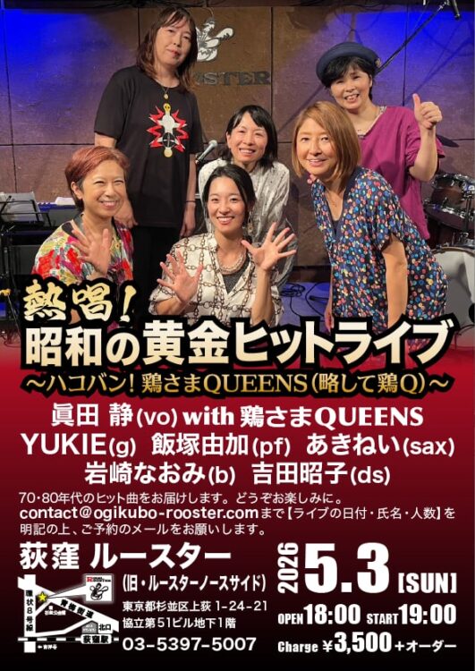 ★5/3(日)【熱唱!昭和の黄金ヒットライブ】「ハコバン!鶏さまQUEENS(略して鶏Q)」